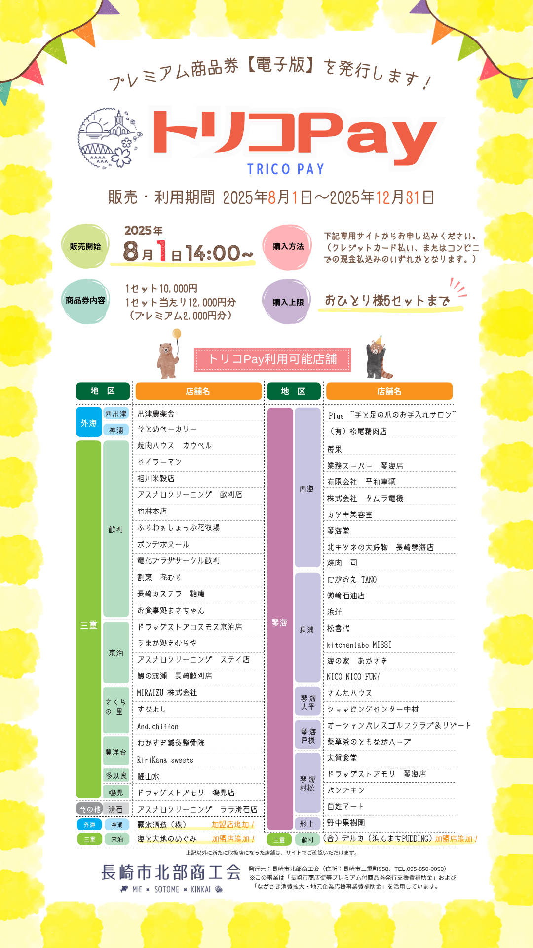 トリコPay2025 (長崎市北部商工会デジタル商品券)完売しました!